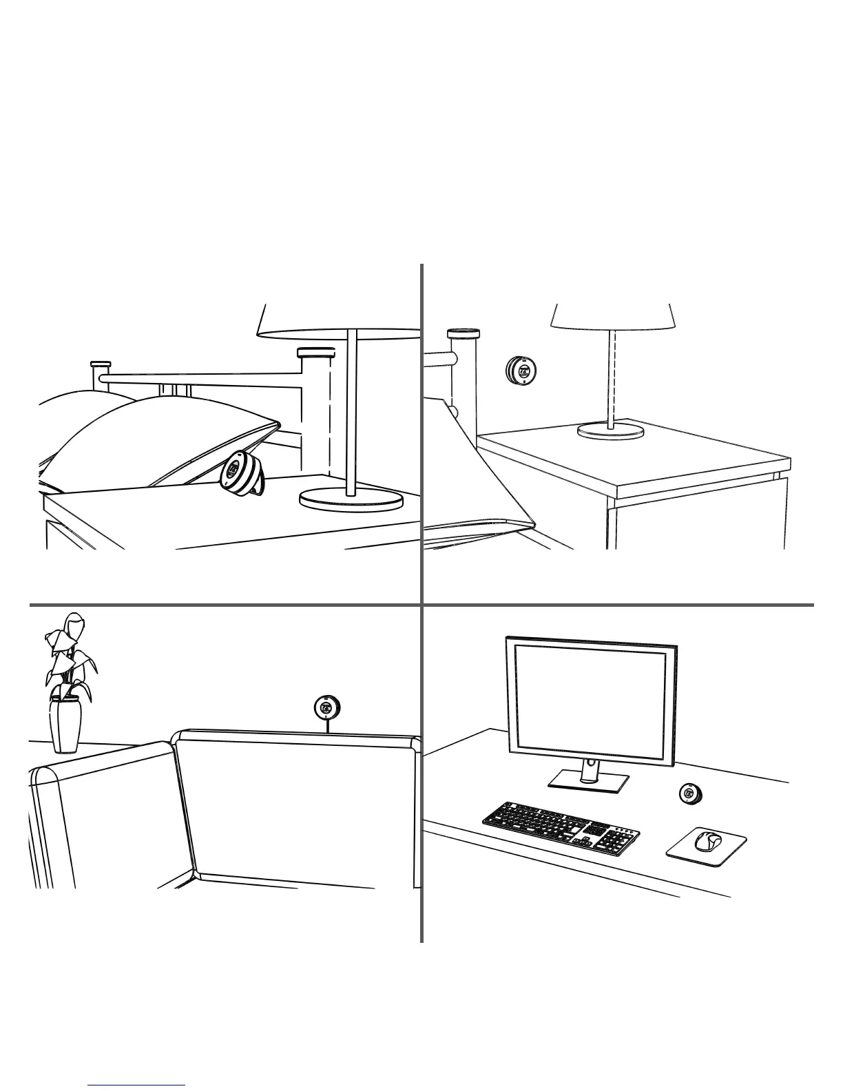 Flair Puck - Puck Placement Examples; Stand Bedside Table; Wall Bedside Table; Wall Behind Couch
