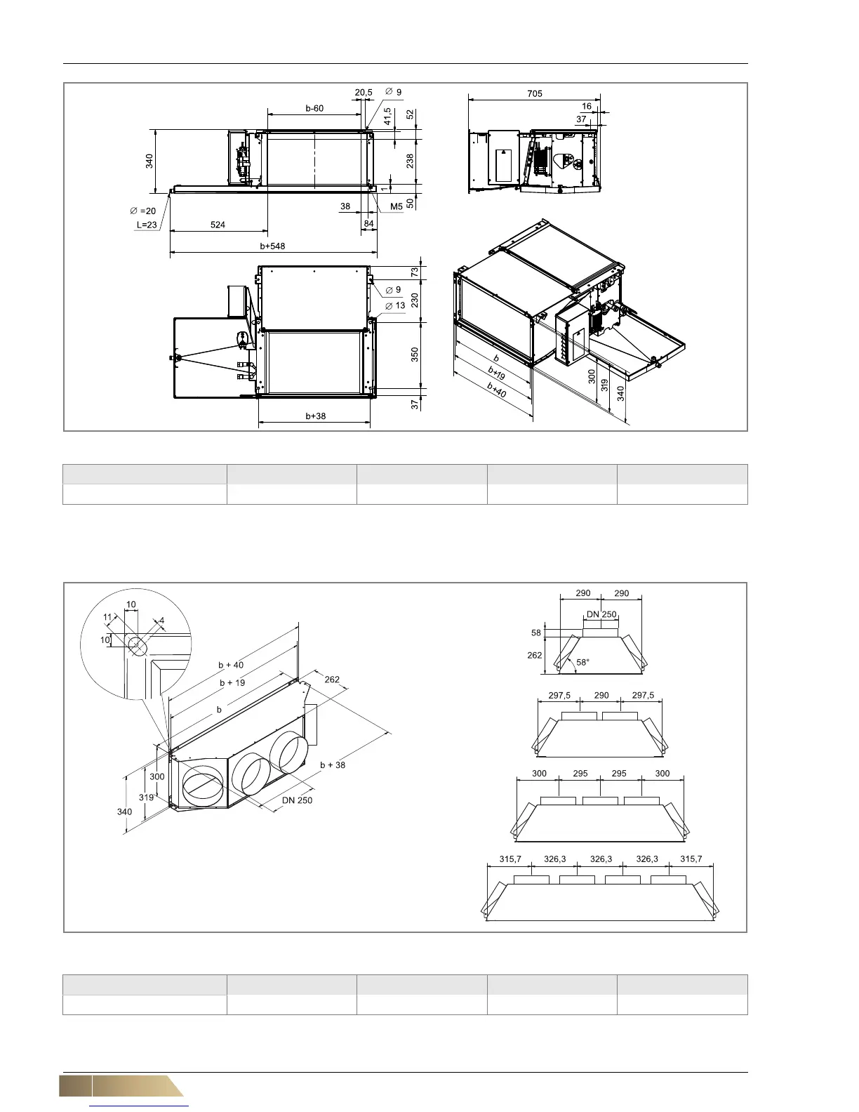 Fig. 2-6: Dimensions of intake and discharge plenum(ZGH.#A031 / ZGH.#A042)