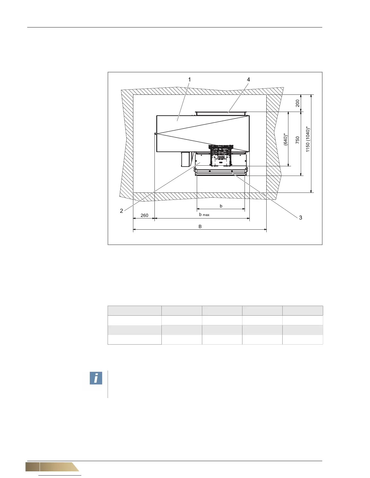recommended that a service opening with minimum dimensions of B x 1150 mm (B
