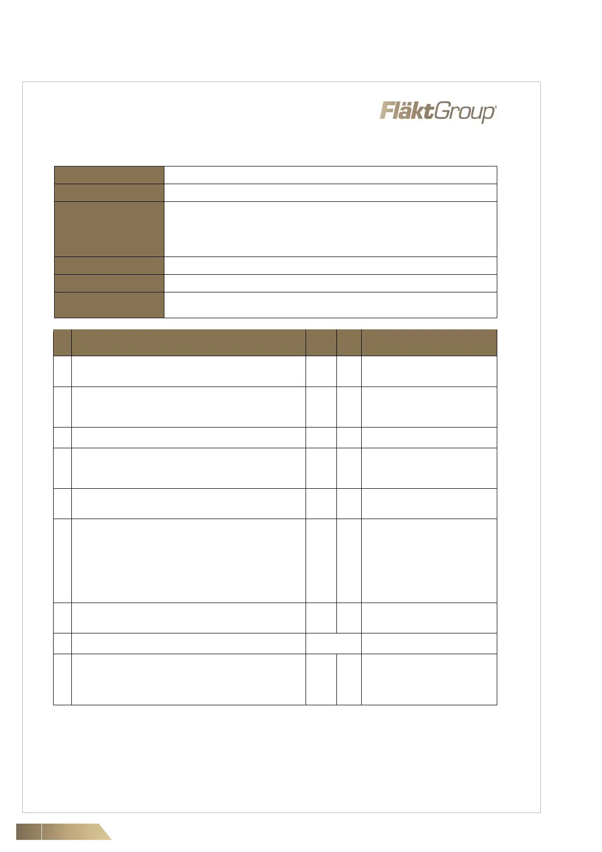 where the requirements has not been adhered to. Please complete and return this form to your FläktGroup contact before the