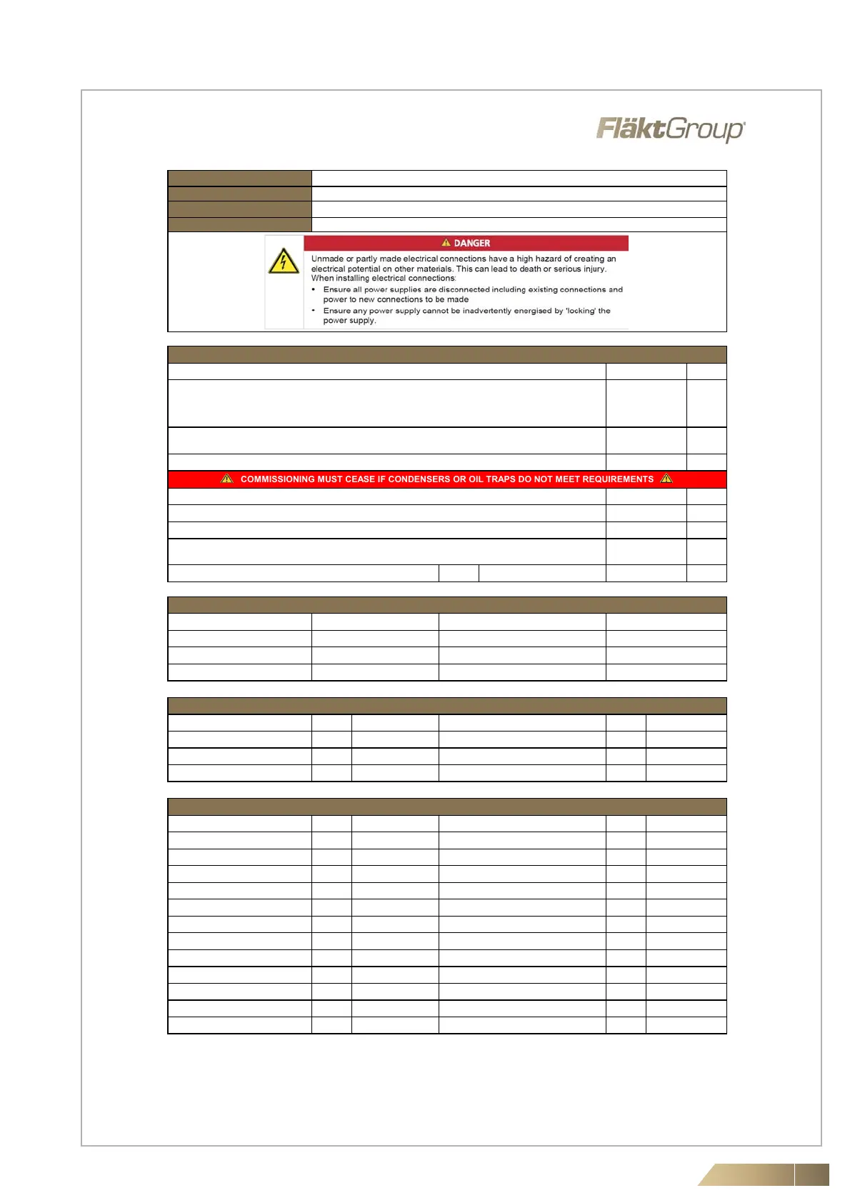 COMMISSIONING MUST CEASE IF CONDENSERS OR OIL TRAPS DO NOT MEET REQUIREMENTS