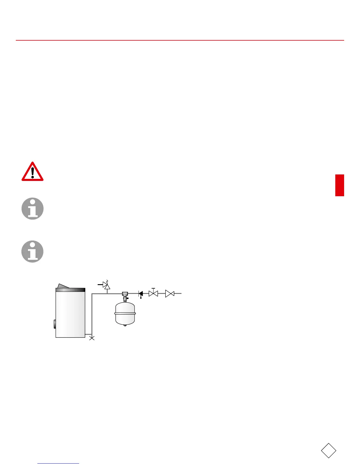Vigtigt: der kan trænge varmt vand ud fra sikkerhedsventiler eller ved aftapning af beholderen.