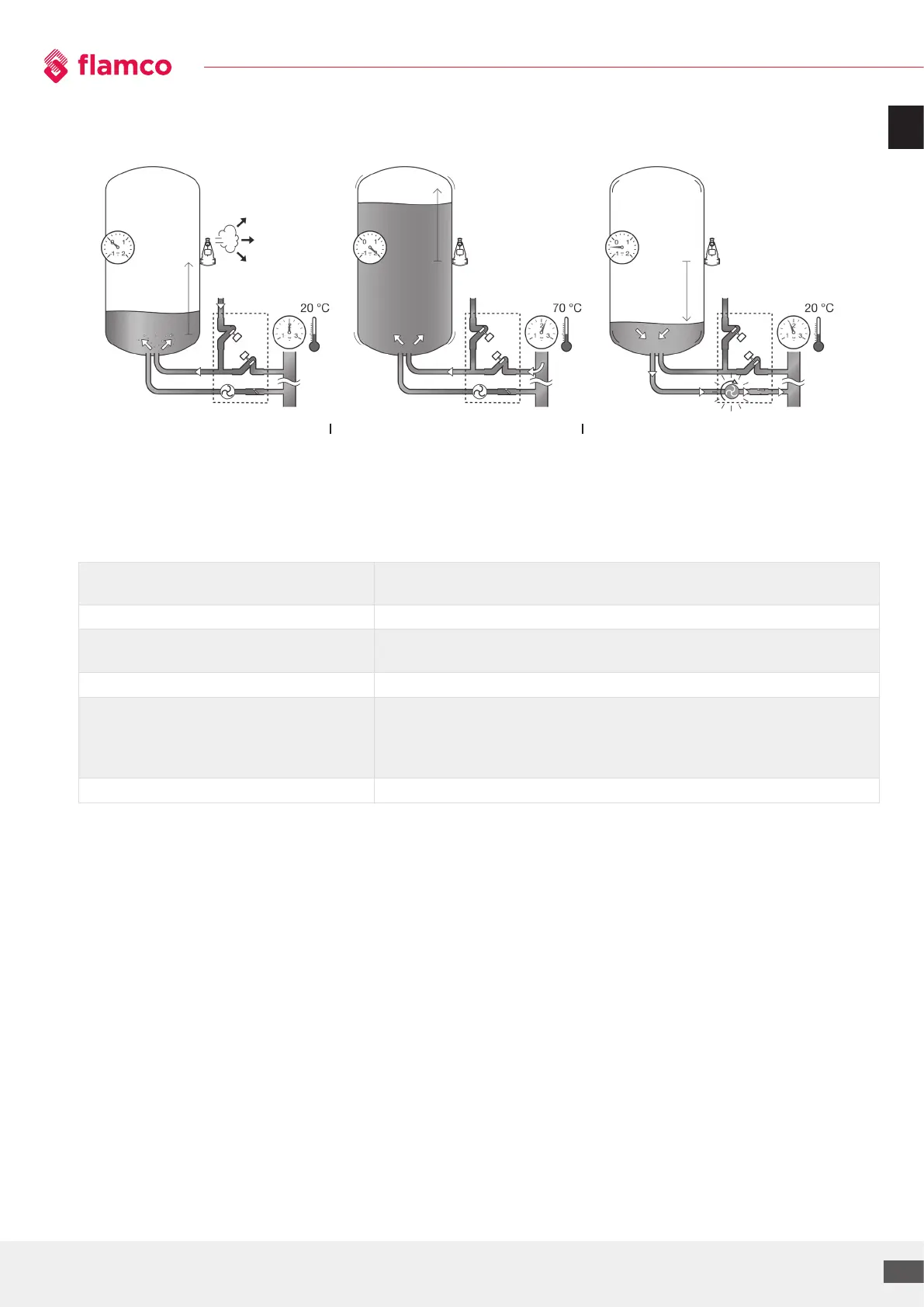 1. Initial filling, refilling and heating 2. Heating up, maximum operation 3. Cooling down, minimum operation