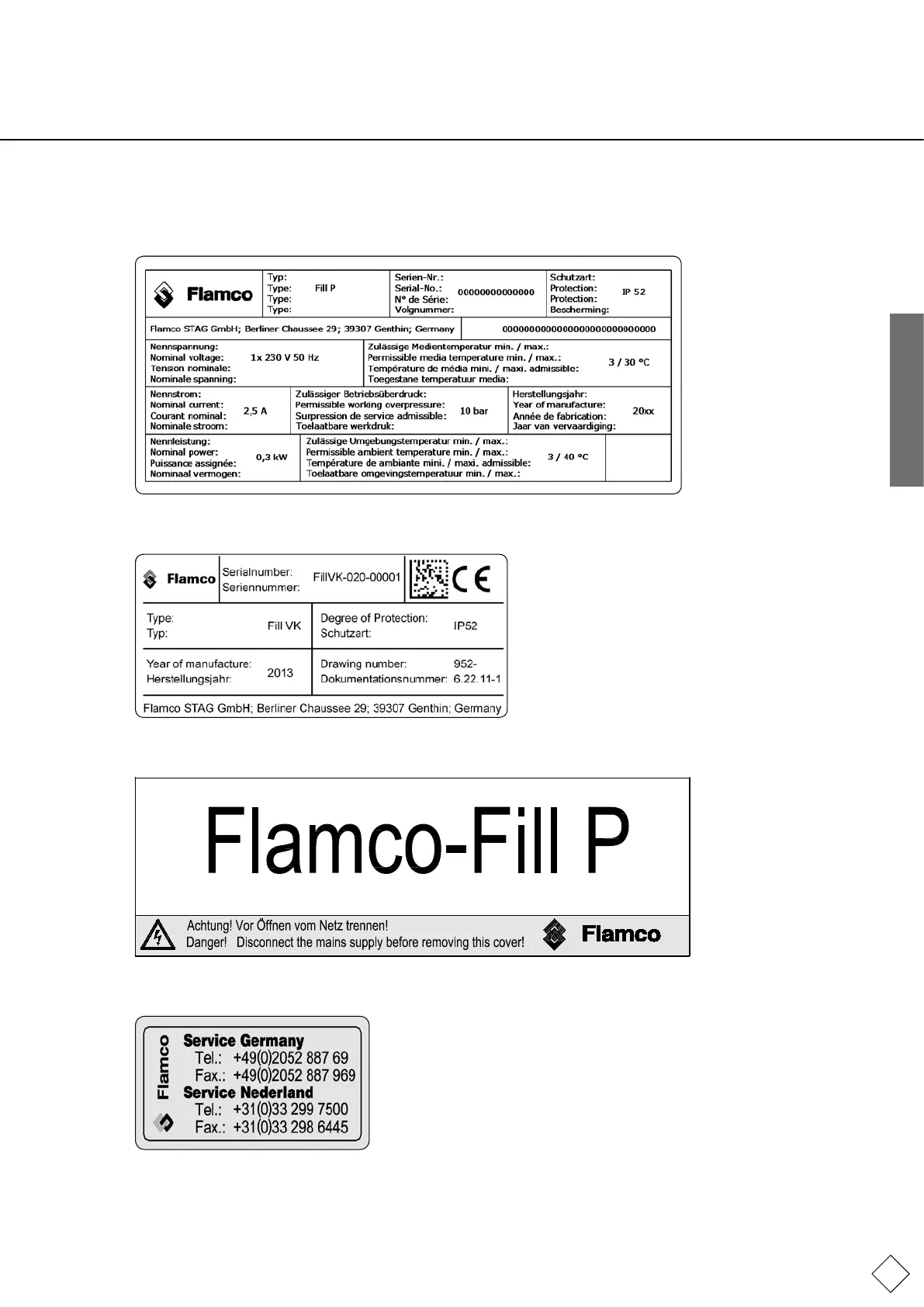 Kennzeichnung Aggregatetyp mit Hinweisen zur Elektrosicherheit auf dem Klemmkasten