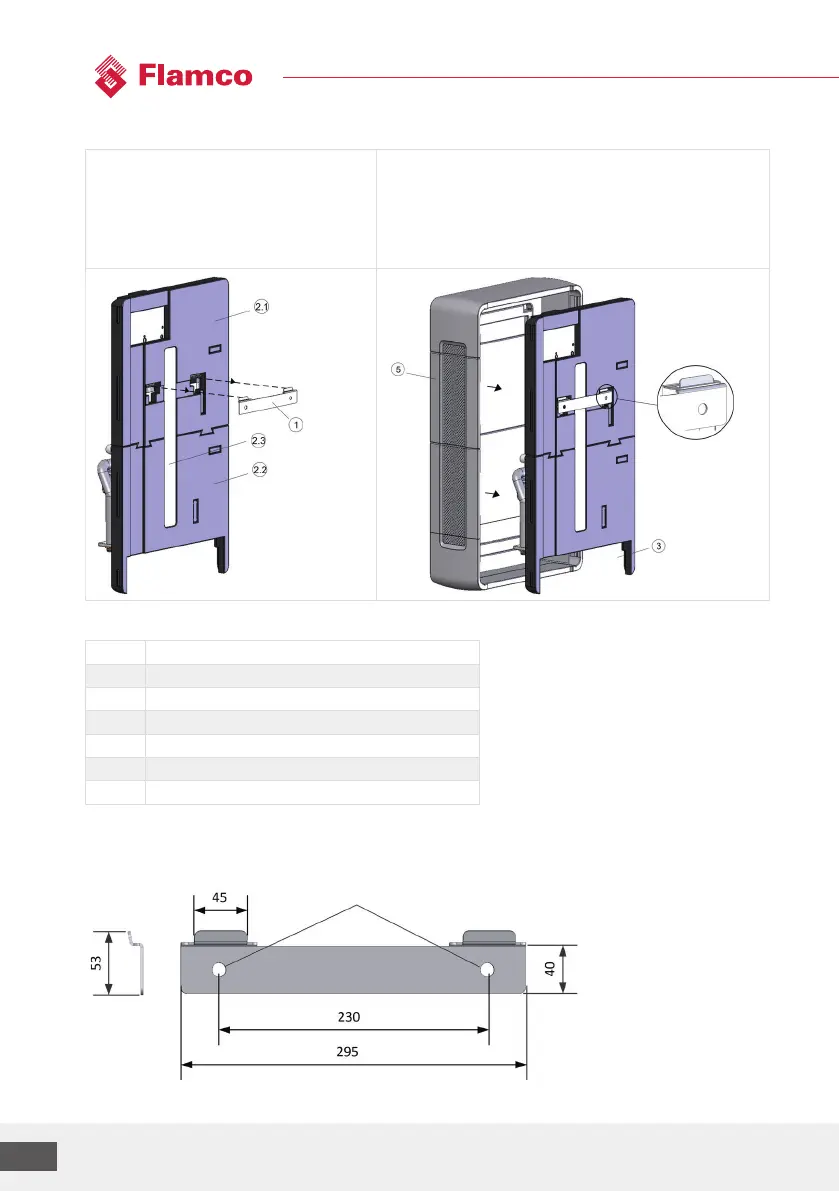 Dimensions of retaining plate (pos. 1) for wall mounting:
