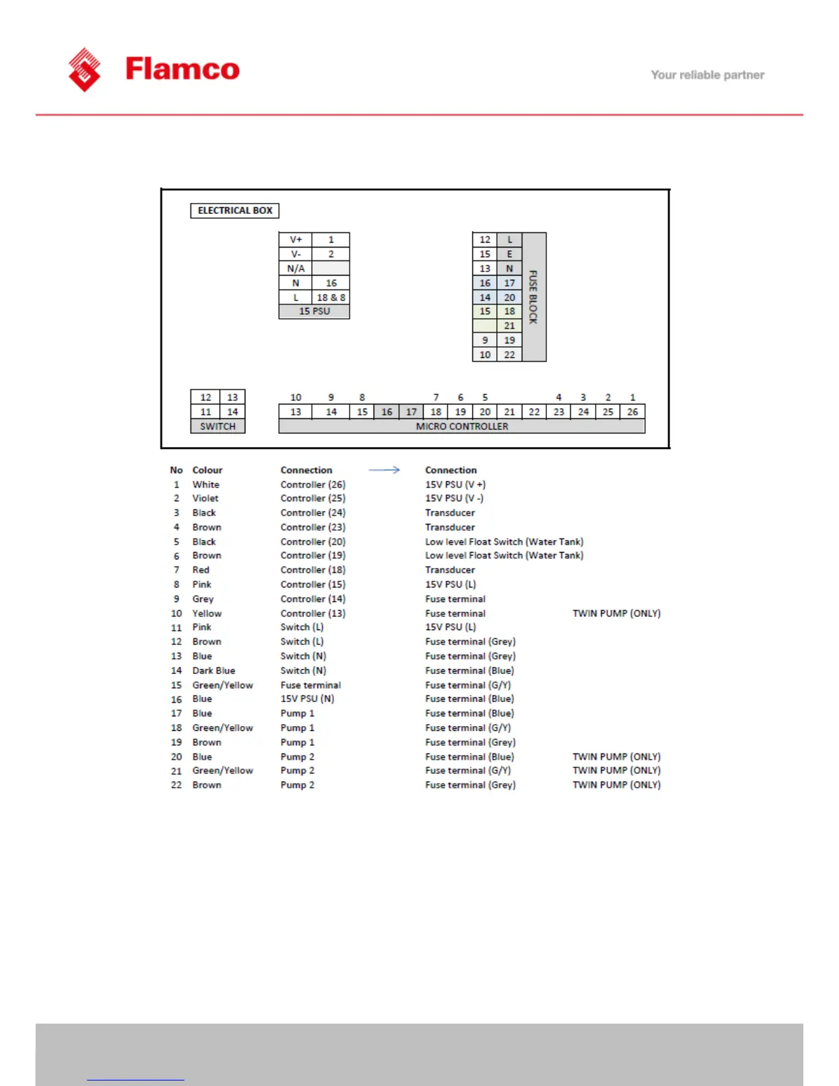 flamco Midi 125D - Wiring Location List