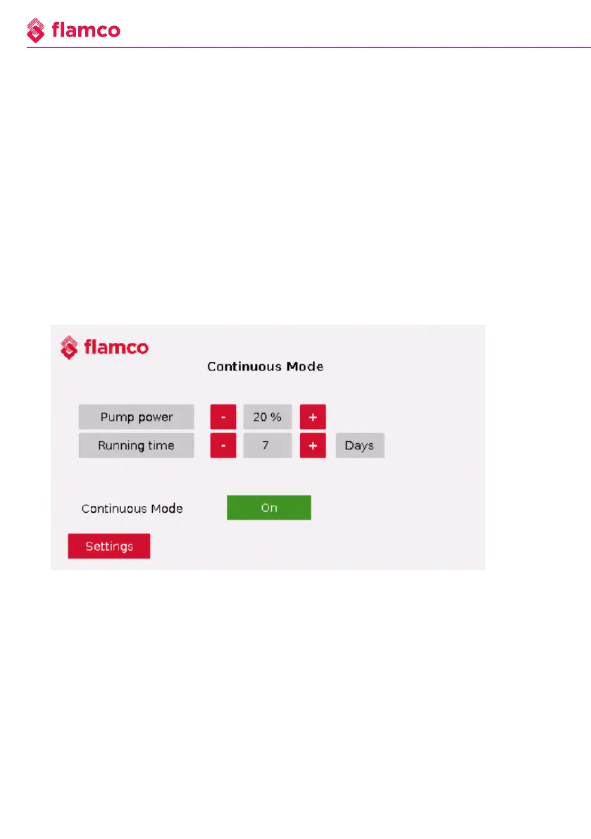 • Adjust the pump output in continuous operation from 10-100% in steps of 5.