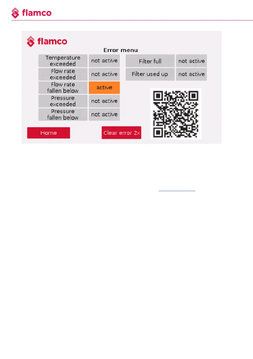 The error menu shows which error is active. The error can be cleared using the ''Clear