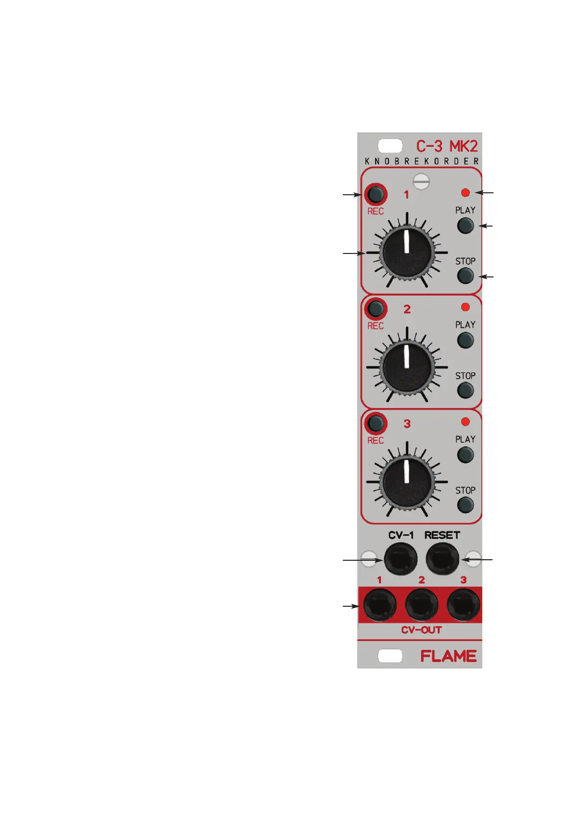 CV outputs of tracks 1-3 (0..10V, +/-5V)