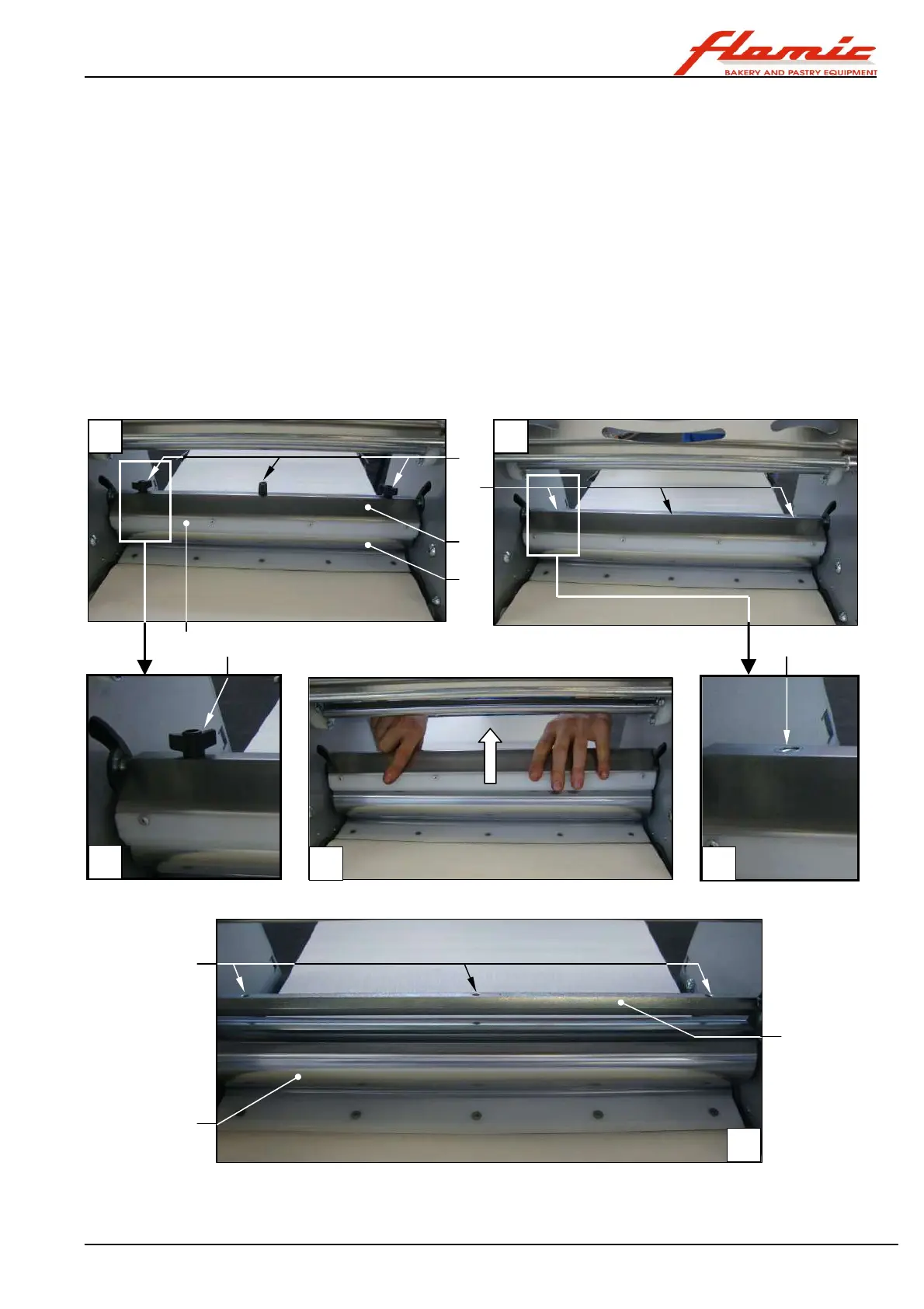 To remove the scraper unit of the upper roller, simply unscrew and remove the butterfly screws ref. 4 on the top