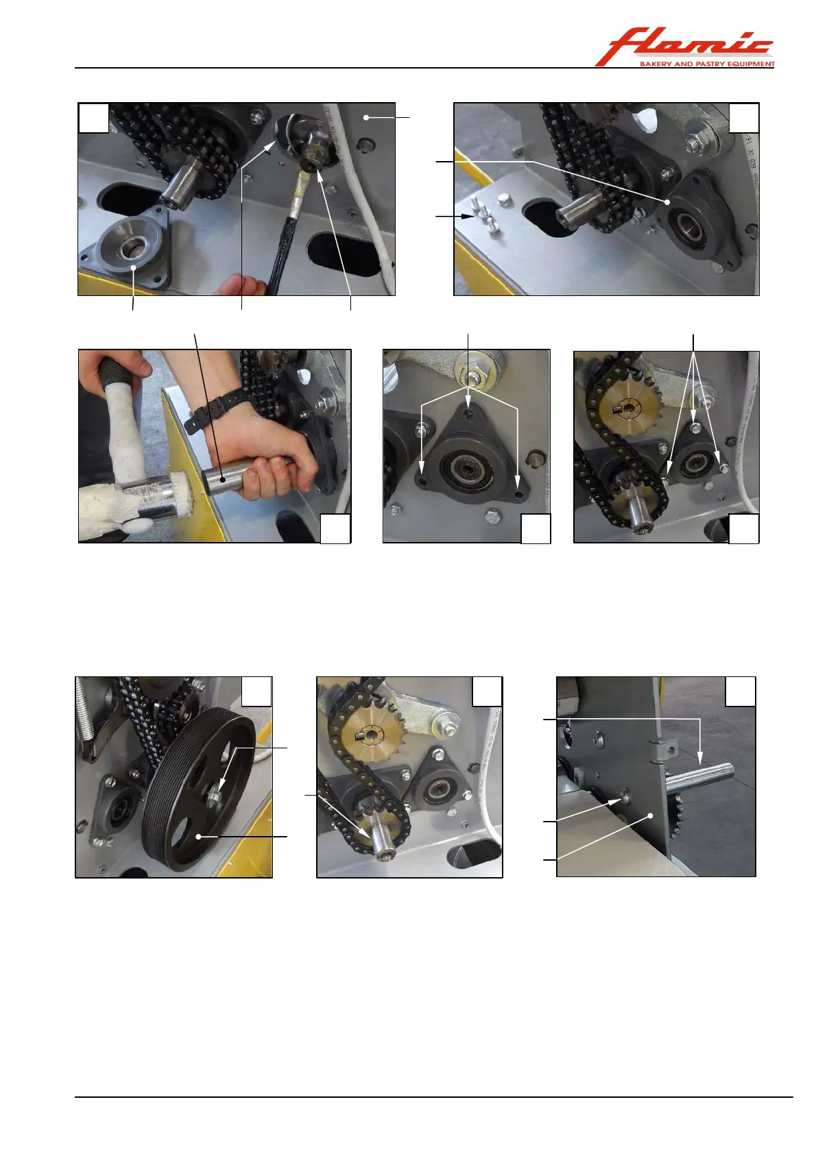 34. install the chain ref. 46 (photo F) (see section 4.7) that drives the conveyor belt drive roller ref. 22 Figure 40