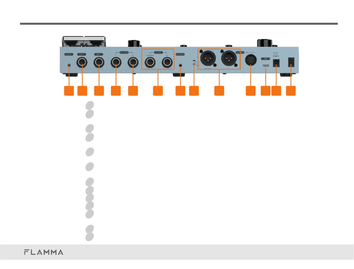 EXP2:1/4”stereoaudioinputjack,connecttoexternalexpressionpedal(Notes:pleaseuse1/4”TRS