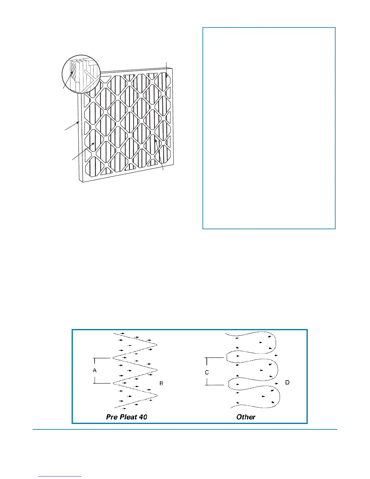 Radial wedge pleats have unequal air exit (D) and air entering (C) areas, which cause higher resistance and