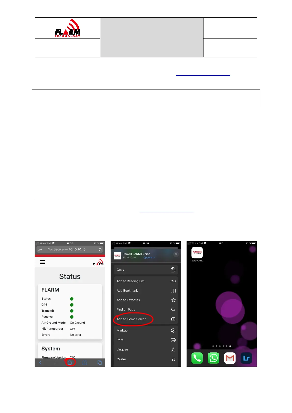1. Open FLARM Hub in Safari (visit http://10.10.10.10/ and make sure you are