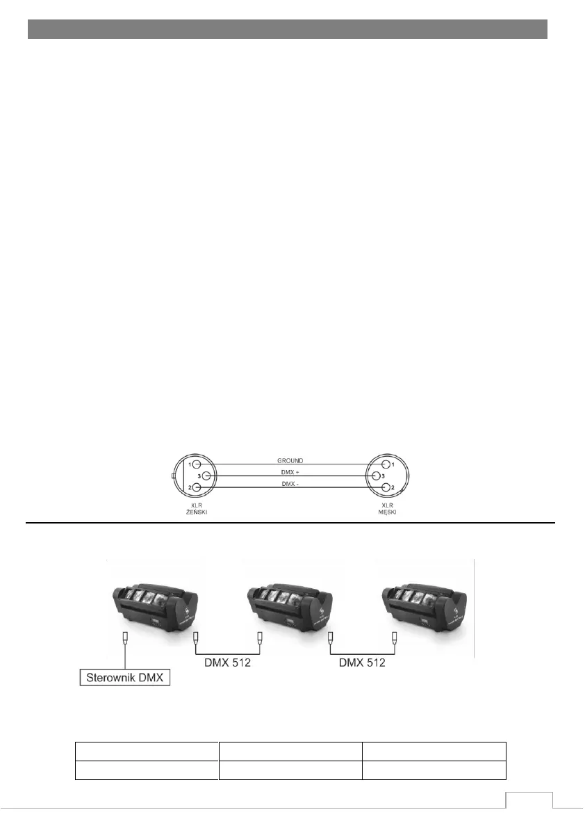 1. DMX (wejście/wyjście) – złącza: XLR 3-pin