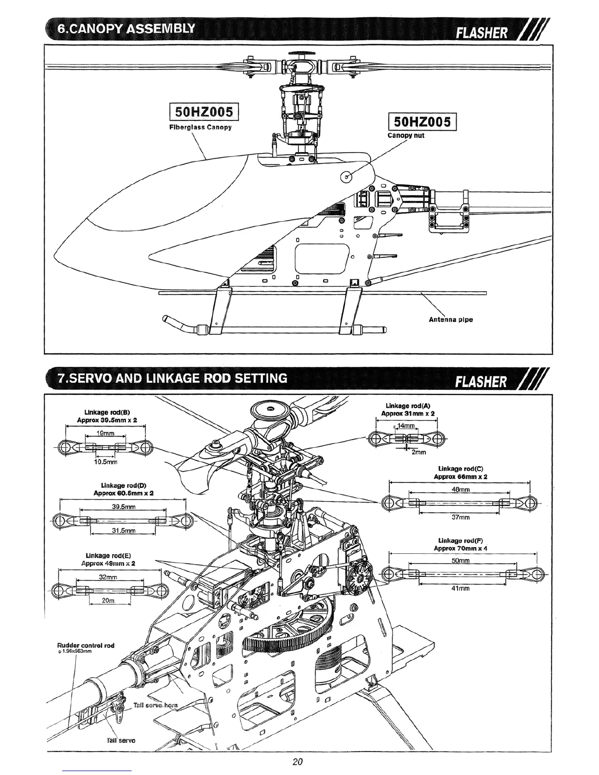 Flasher 600 ESP - Canopy Assembly; Servo and Linkage Rod Setting