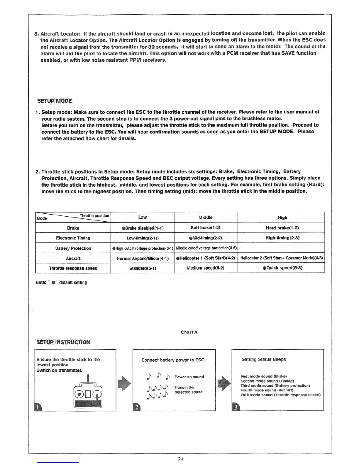Flasher 600 ESP - Aircraft Locator and ESC Setup Mode Guide; ESC Setup Instruction Flowchart