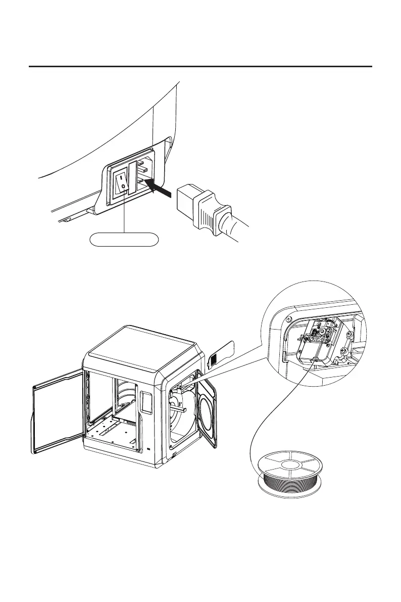 2. Load Filament: open the filament cover on the right side, insert the filament into