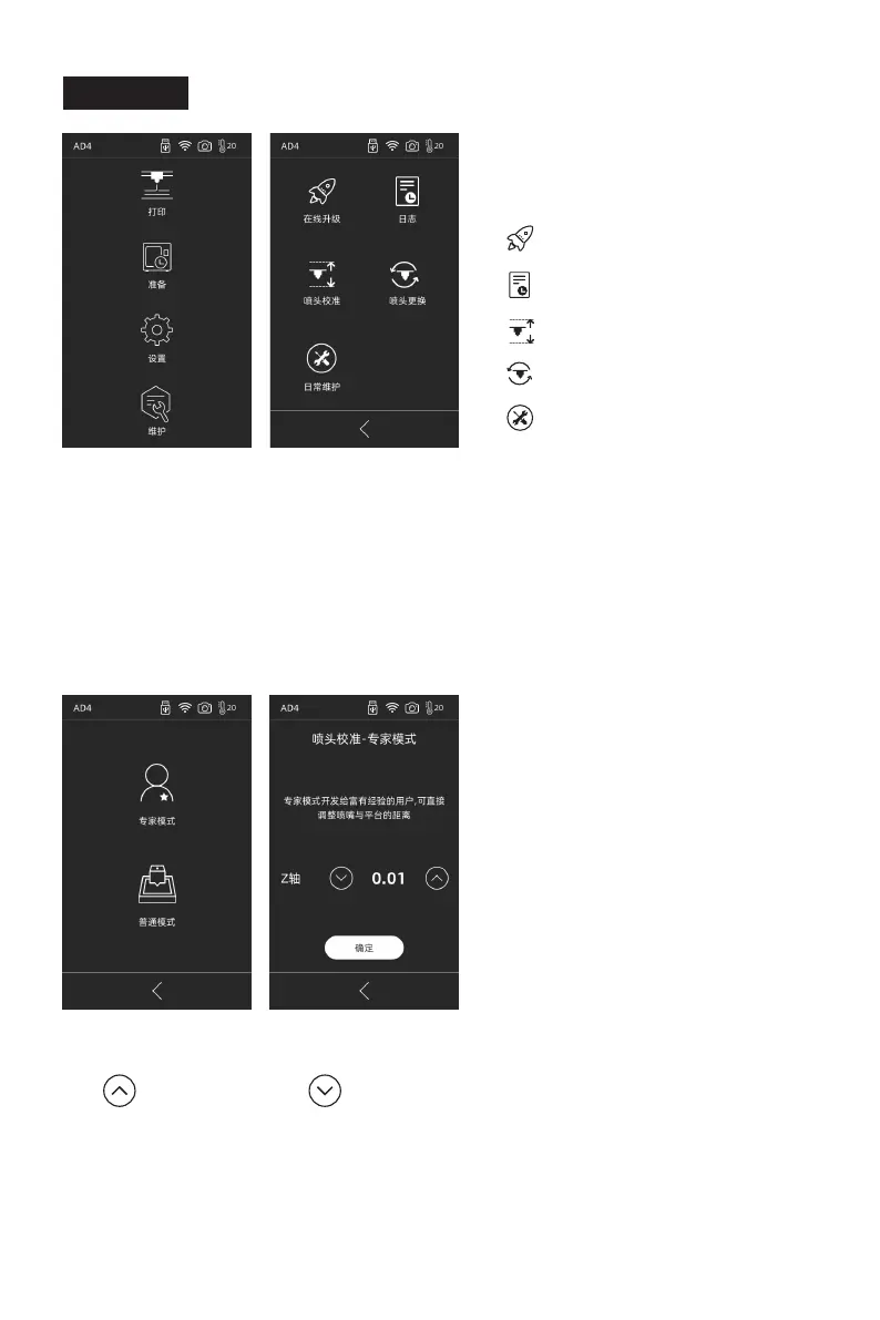 专家模式:适合经验较多的用户使用,直接判断喷嘴与平台的距离进行直接调整。