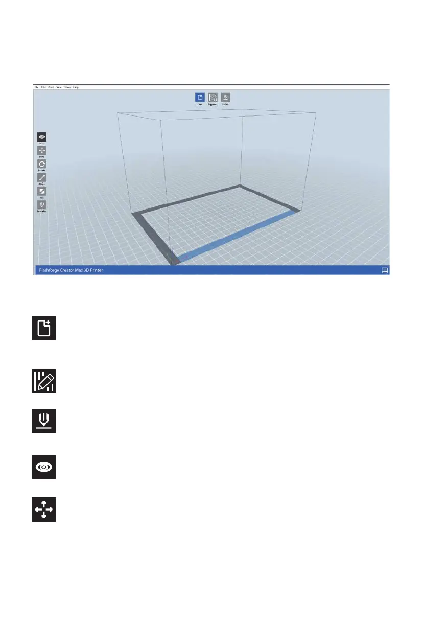 Loads a model or Gcode file. FlashPrint supports .STL, .OBJ, and .FPP model files.