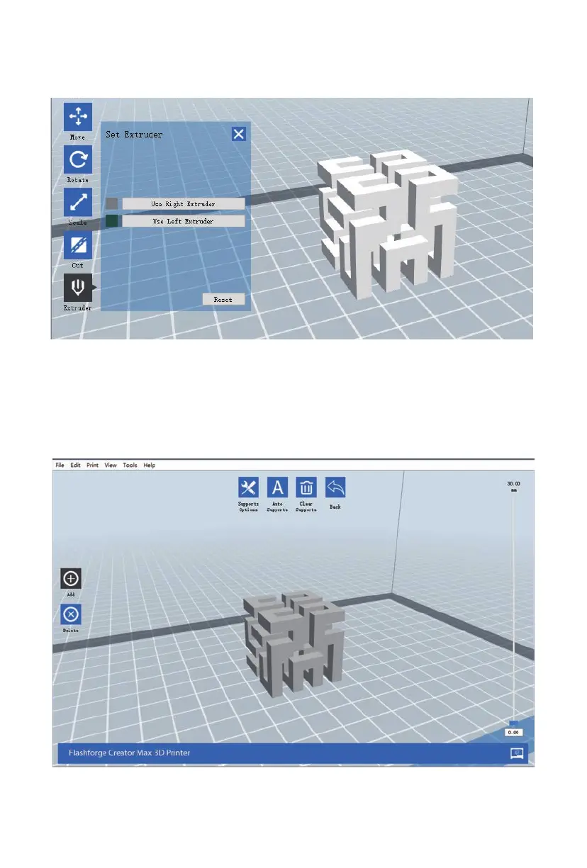 Double-click the Extruder icon to select the left and/or right extruder for printing.