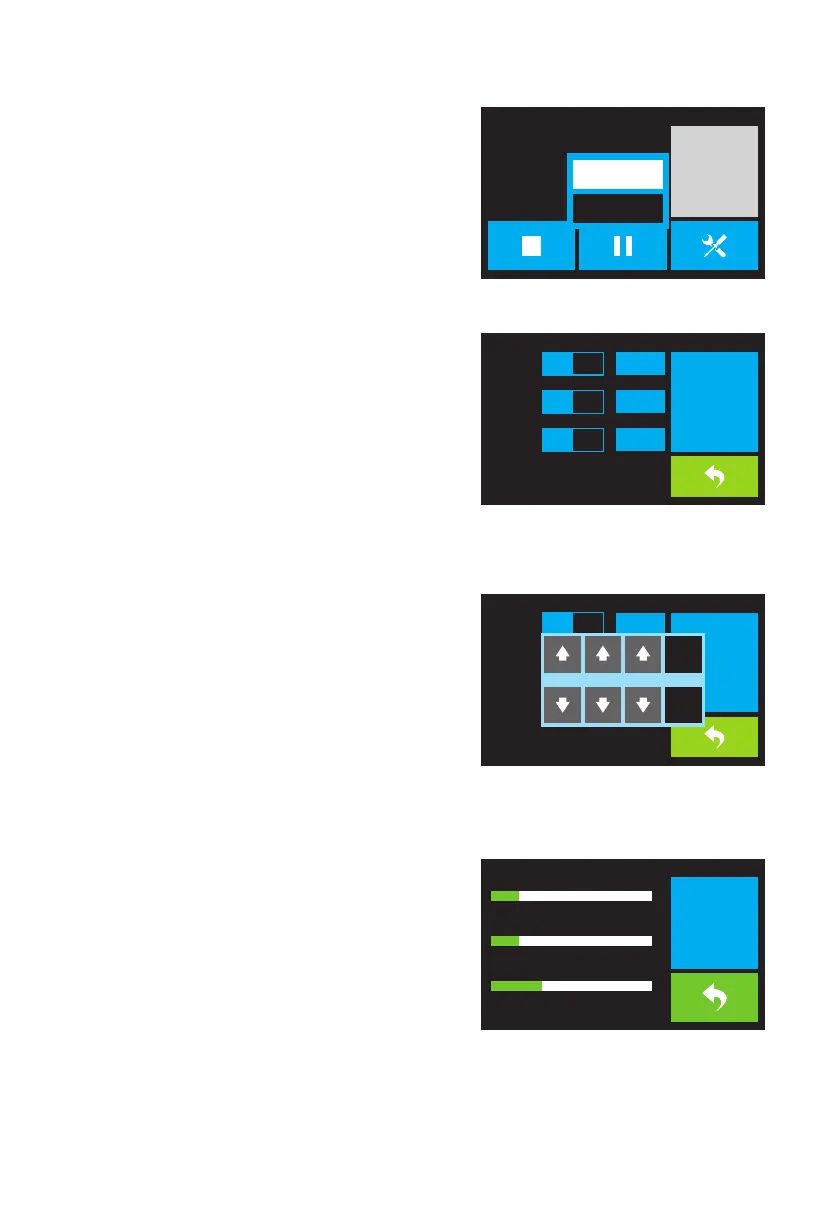 · Touch the slider buttons to turn extruder and platform