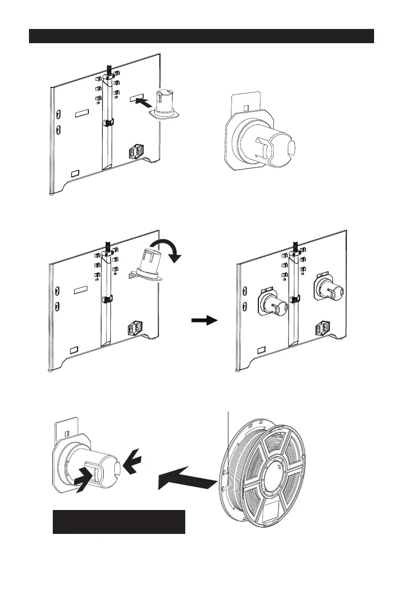 1.To install a spool holder, level it and insert the end into the corresponding opening.