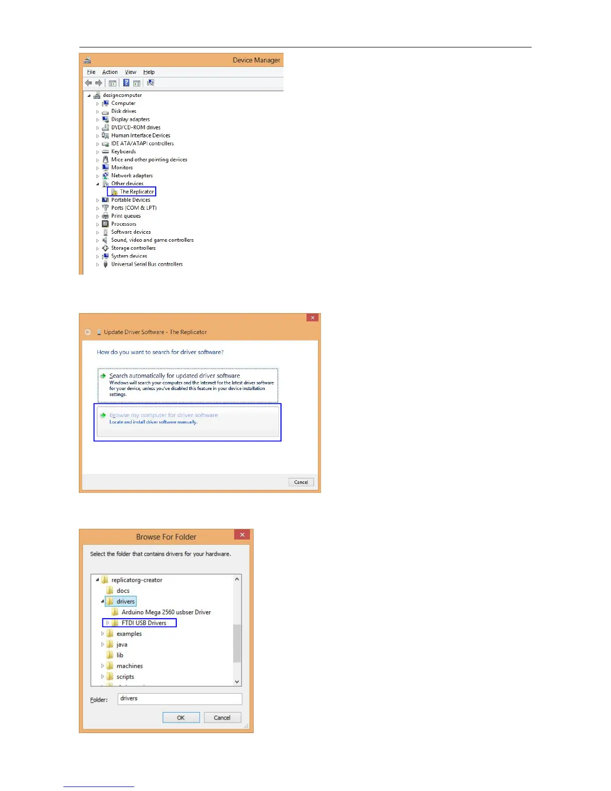 Click Browse my computer for driver software to find the location of ReplicatorG0040 on your system.
