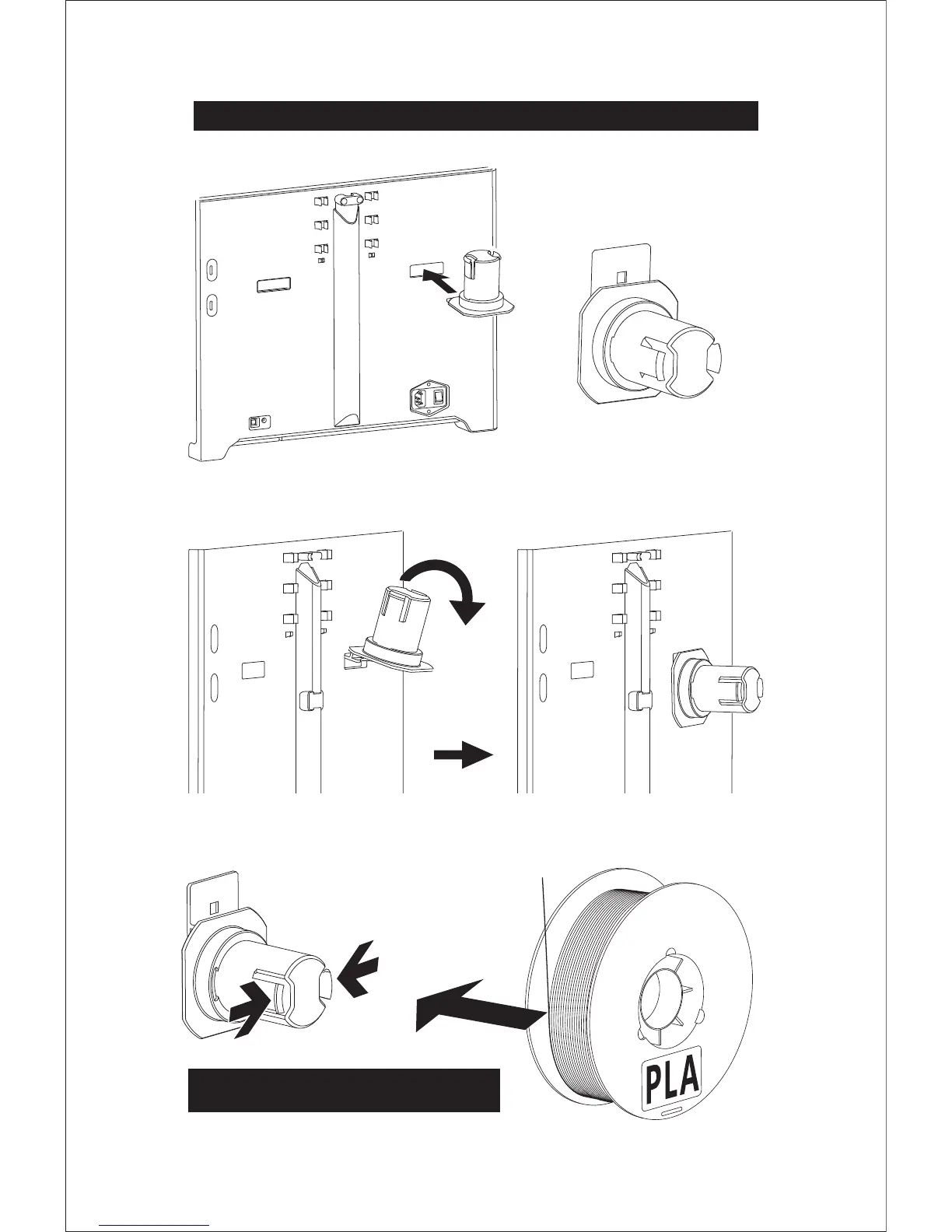 1. To install a spool holder, level it and insert the end into the corresponding opening.