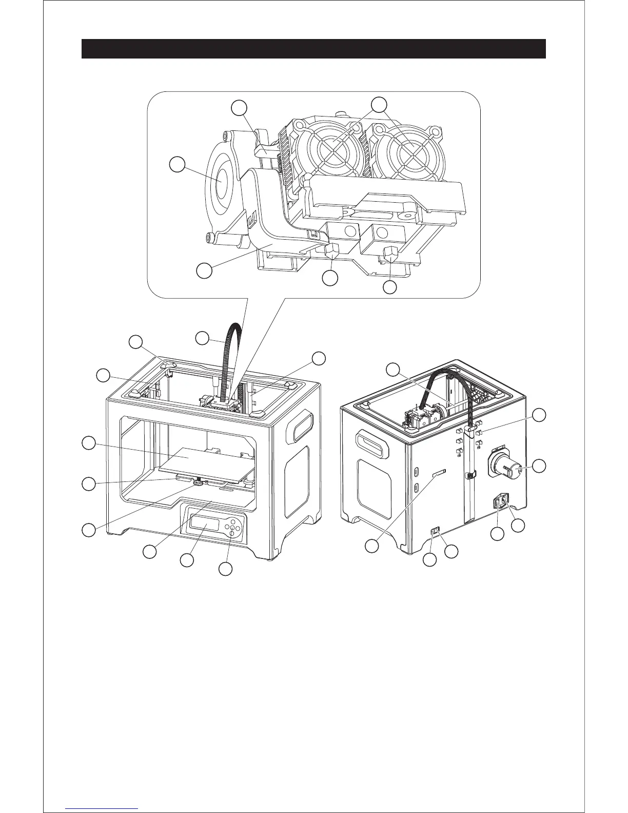 FLASHFORGE 3D PRINTER Creator Pro - Getting to Know Your Creator Pro; Printer Component Identification