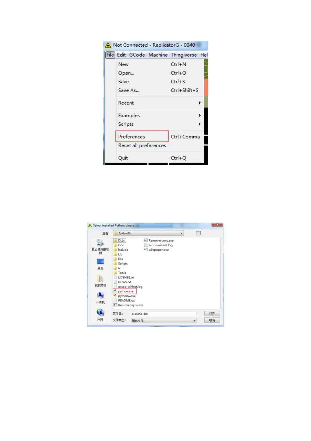 Find the Python installation directory in the dialog box, select python.exe and click