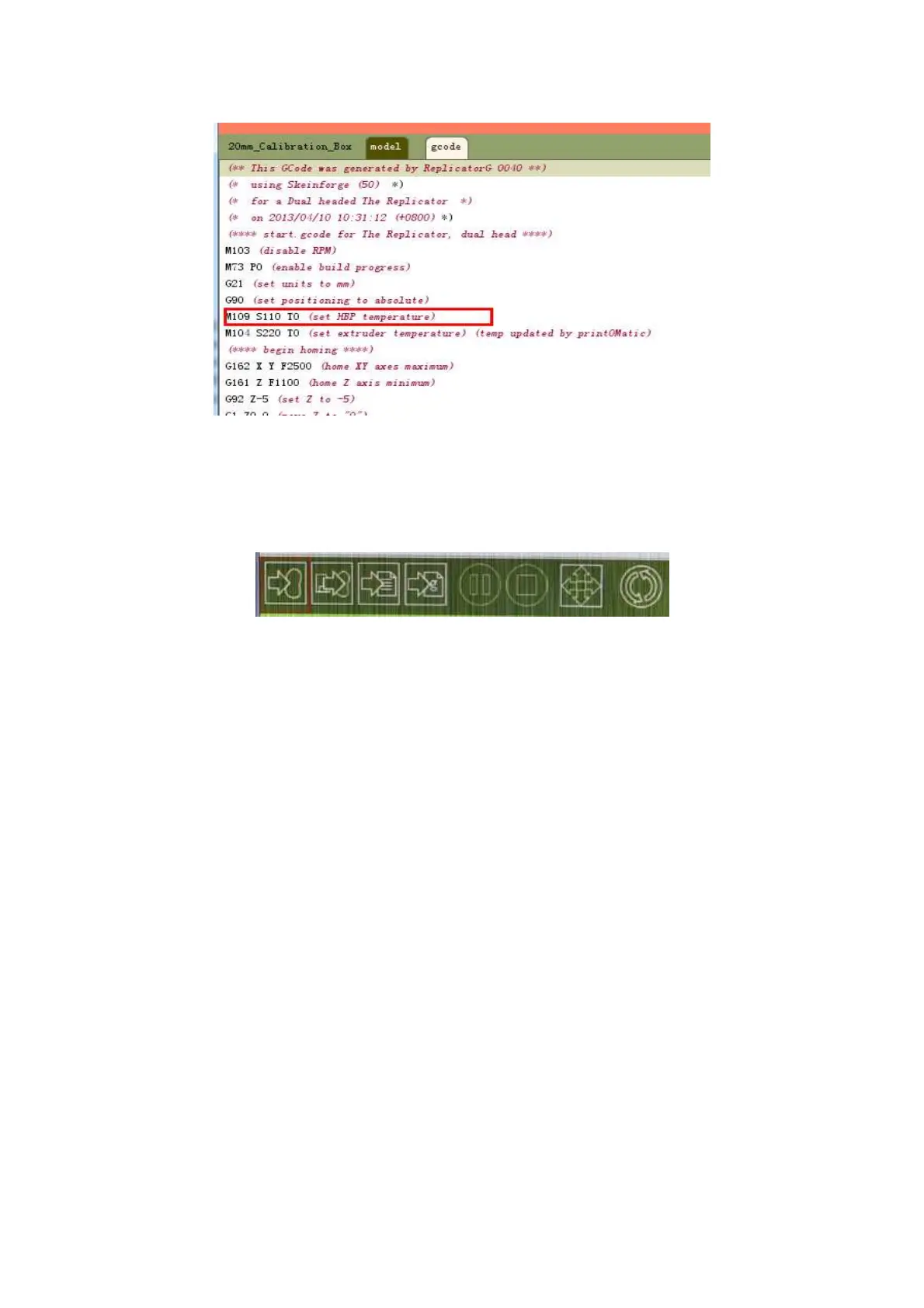 Then modify M109 S110 in red box TO (set HBP temperature) M109 S115 (set