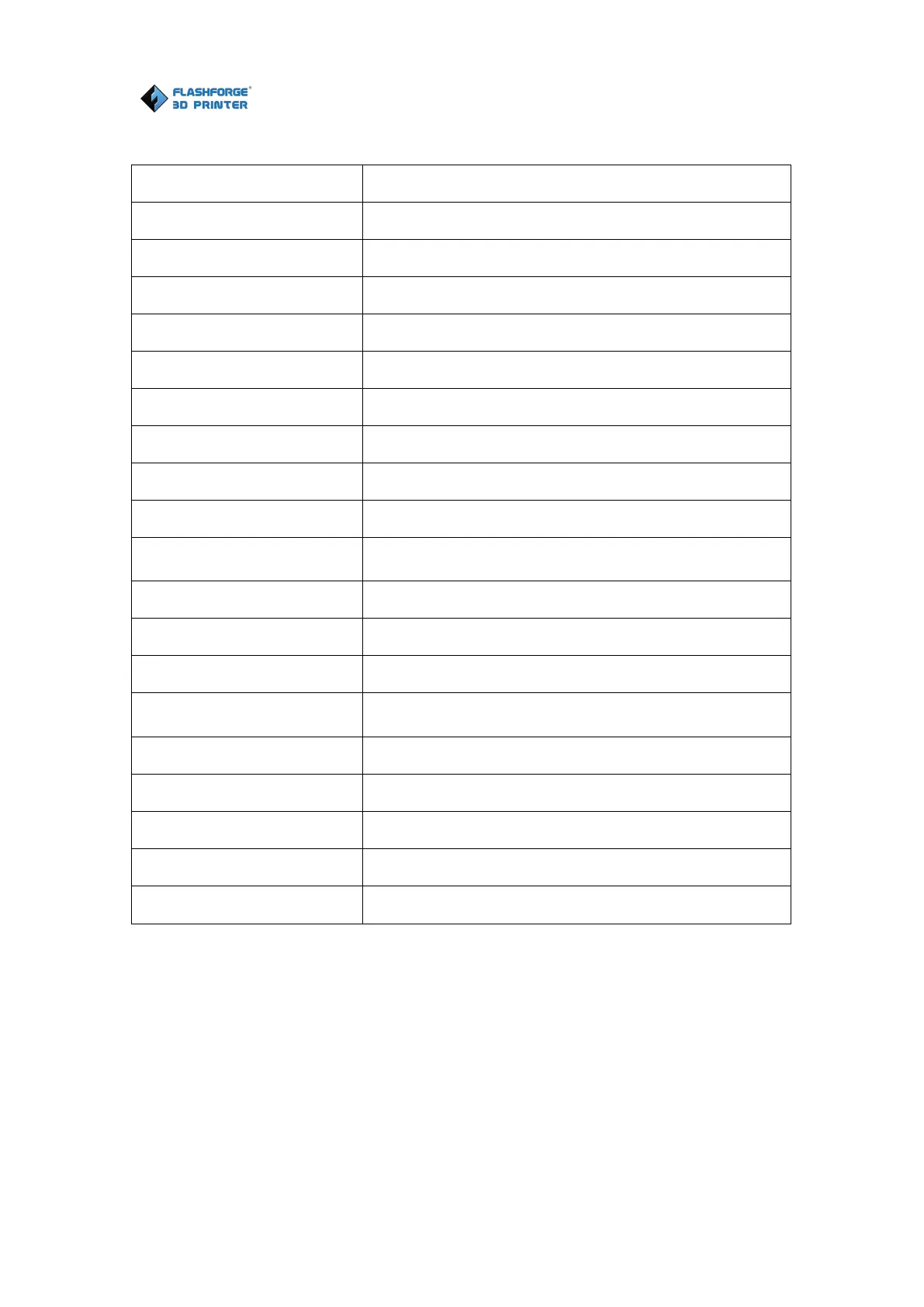 FLASHFORGE 3D PRINTER Dreamer NX - Technical Specifications; Printer Technical Reference
