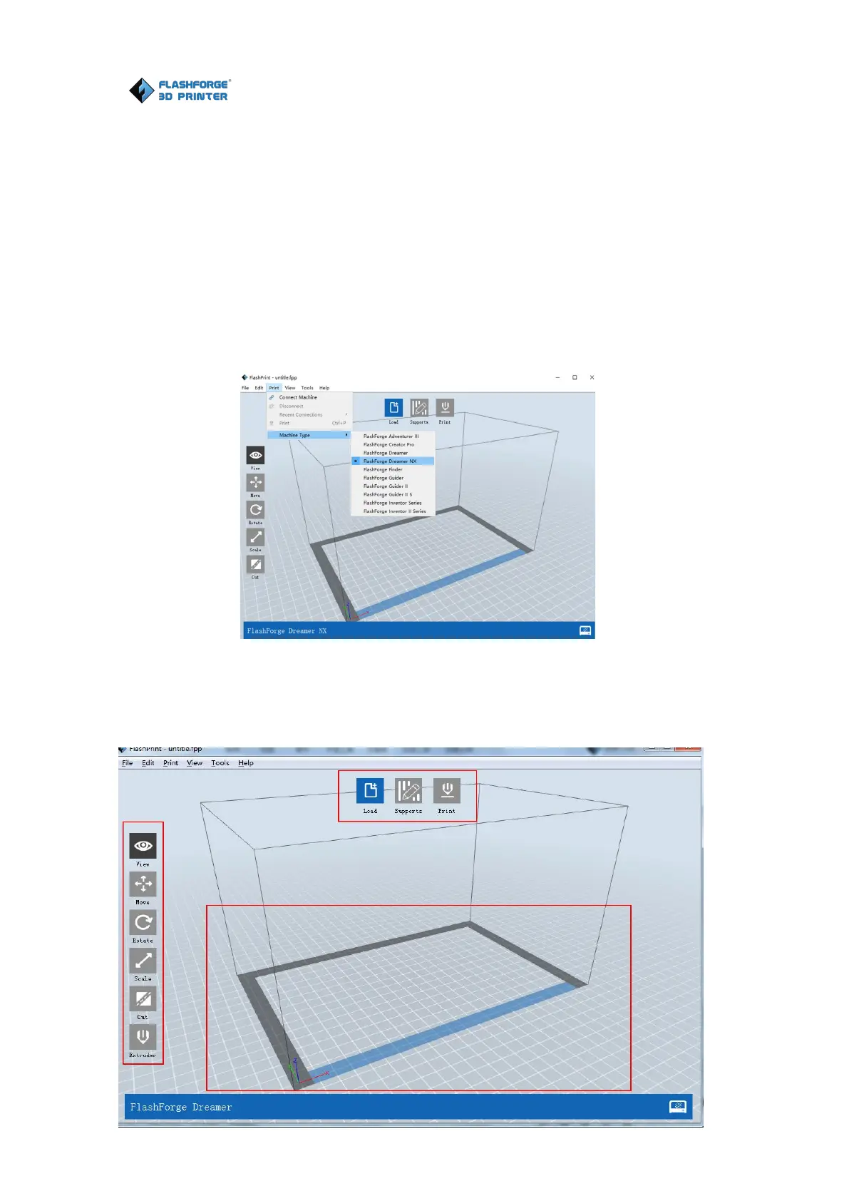FLASHFORGE 3D PRINTER Dreamer NX - FlashPrint Interface and Model Operations; Exploring FlashPrint Interface; Machine Type and Menu Overview
