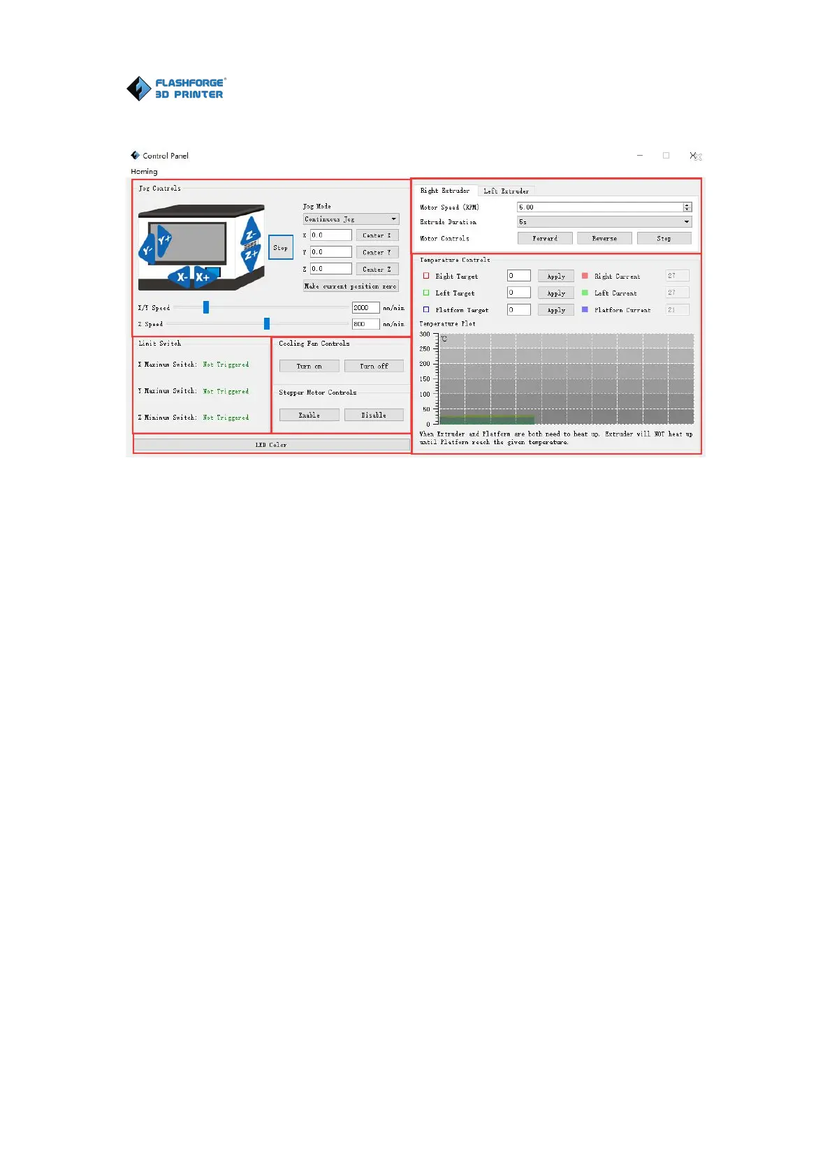 specified distance; Click Y-, extruder will move backward a specified distance.