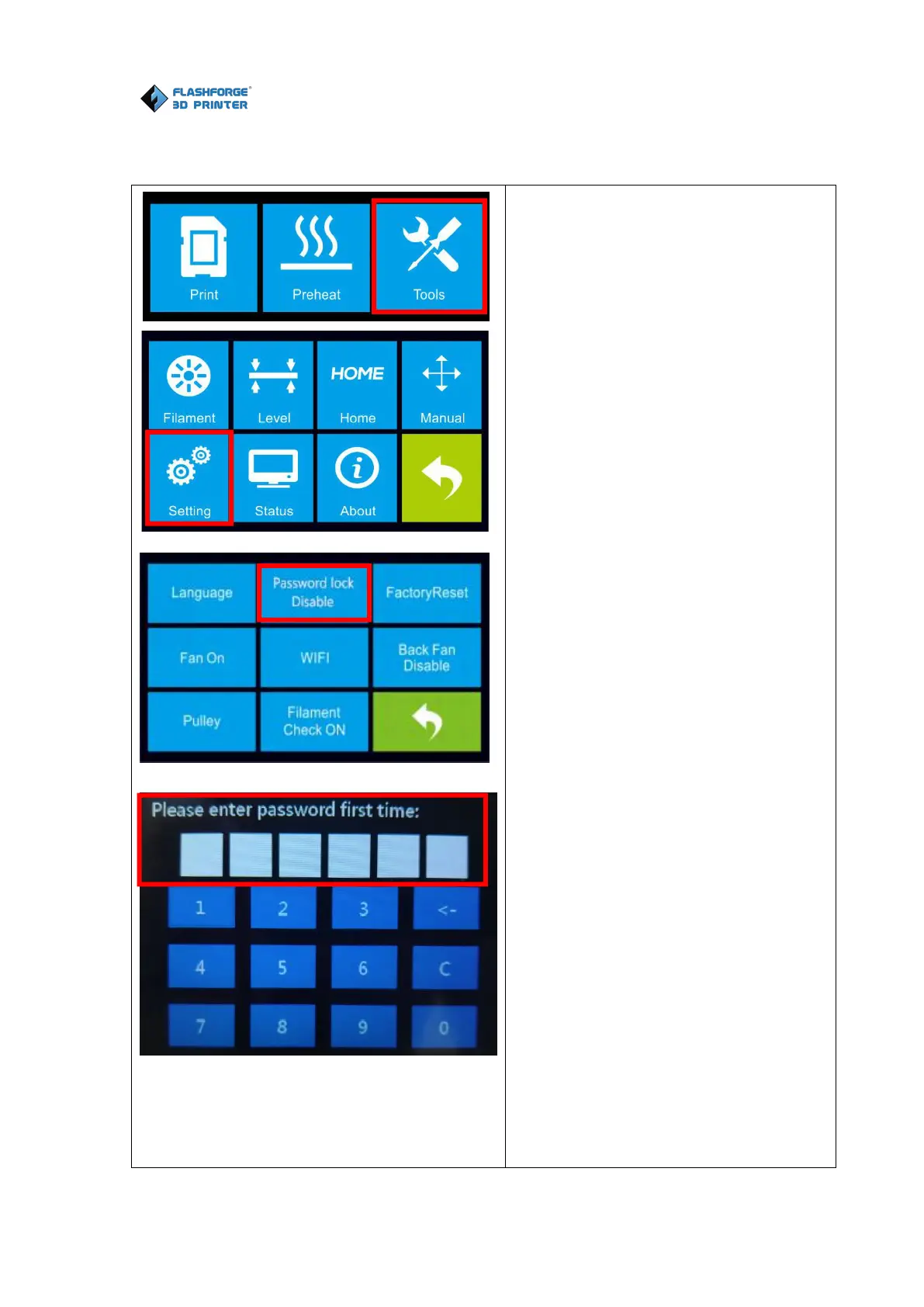 7.After password lock setting is