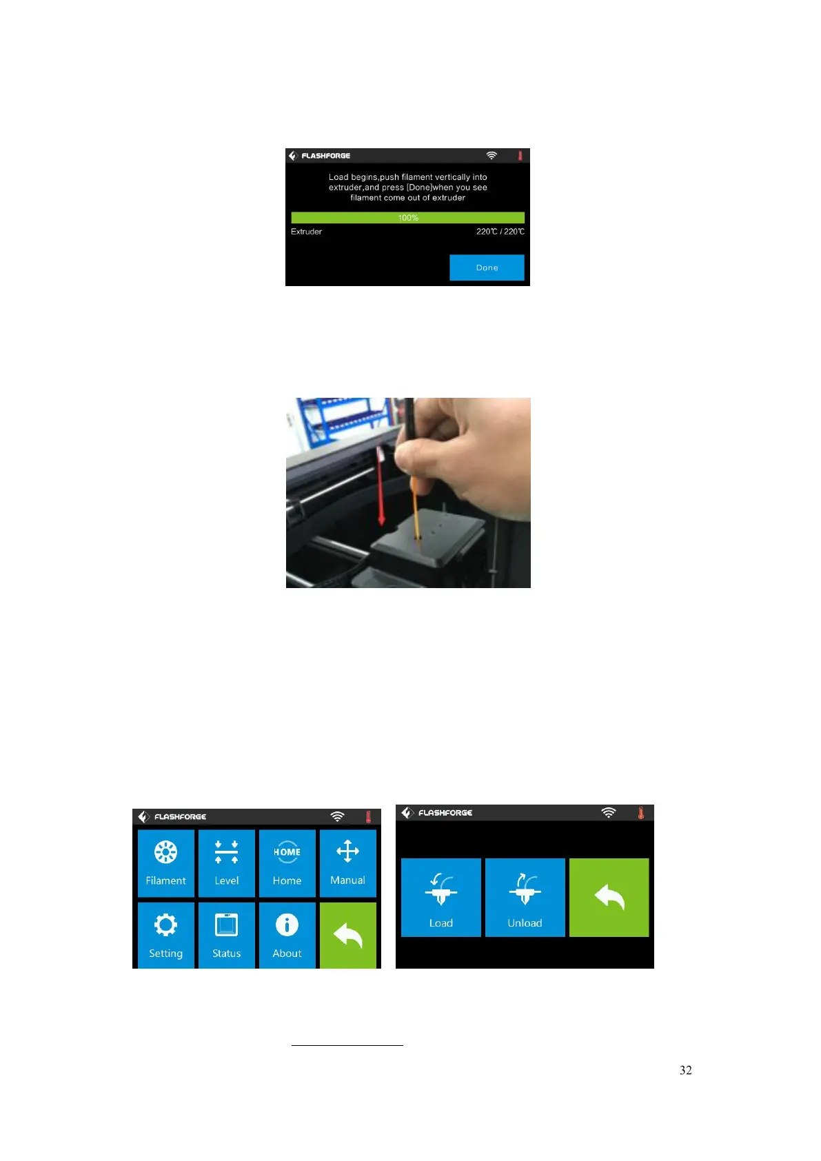 4-9After the extruder's temperature reaches 220, the printer will sound a