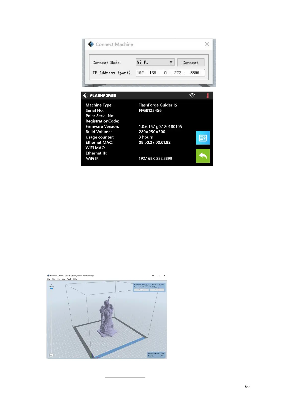 into FlashPrint at the status of USB connection or WiFi connection or Ethernet
