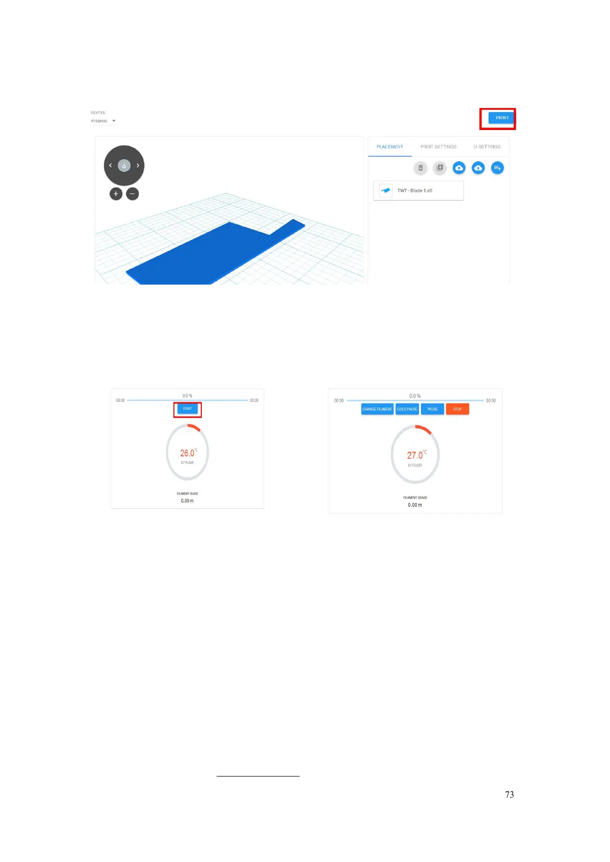 printer on your computer, including Change Filament, Pause, Stop etc.