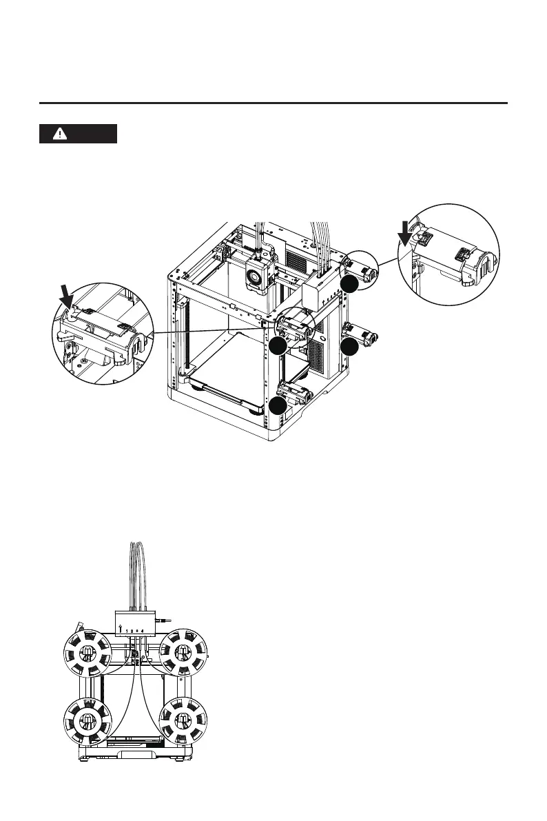 When loading filaments, insert the four filaments into the 1/2/3/4 inlets, respectively. Thread