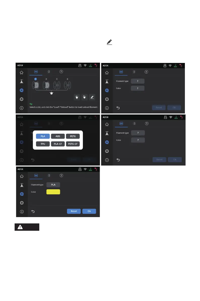 corresponding filament channel, and then click [ ] to select the corresponding filament type