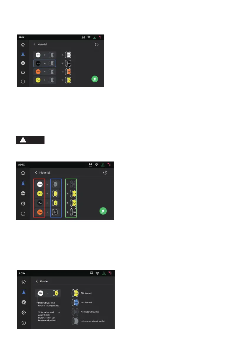 Blue box (middle): Users can click to manually modify the corresponding installed filament spool.