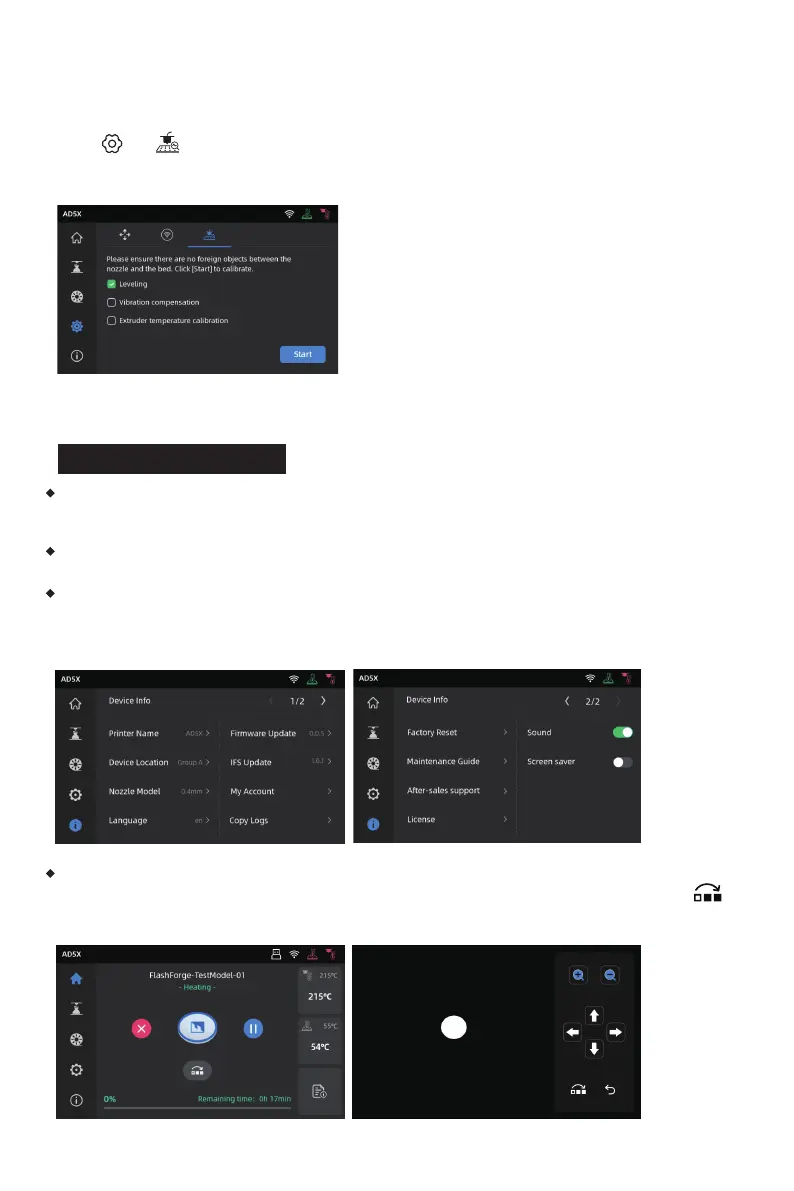 Click [ ] - [ ] to enter the leveling and calibration interface. Choose [Leveling] or [Vibration