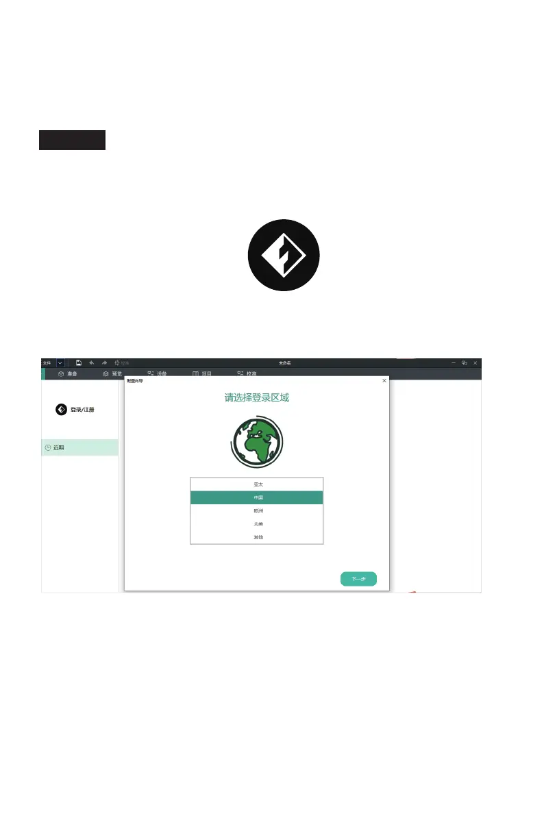 首次使用软件根据配置向导提示选择您所在的登录地区以及对应机型及使用材料。(注:您可以