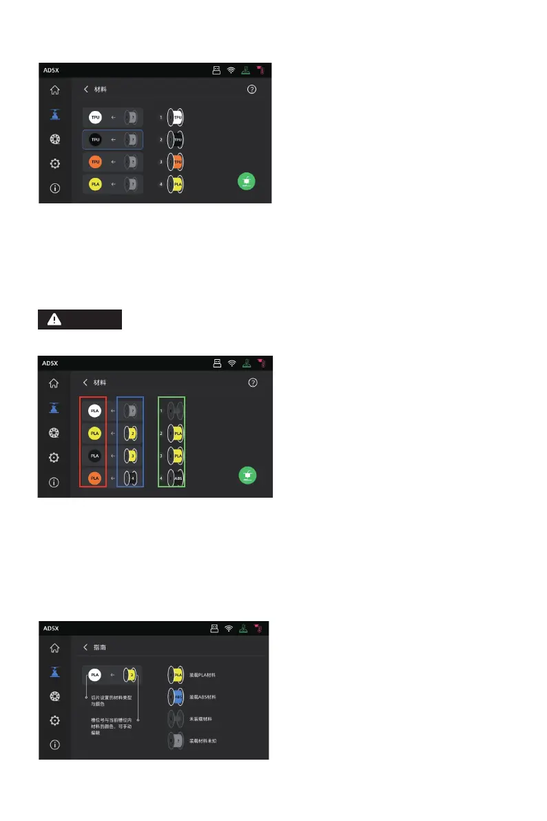 蓝框(中间):用户点击可手动修改对应实际装配的耗材盘。选中该栏后,点击绿色框里对应实际通