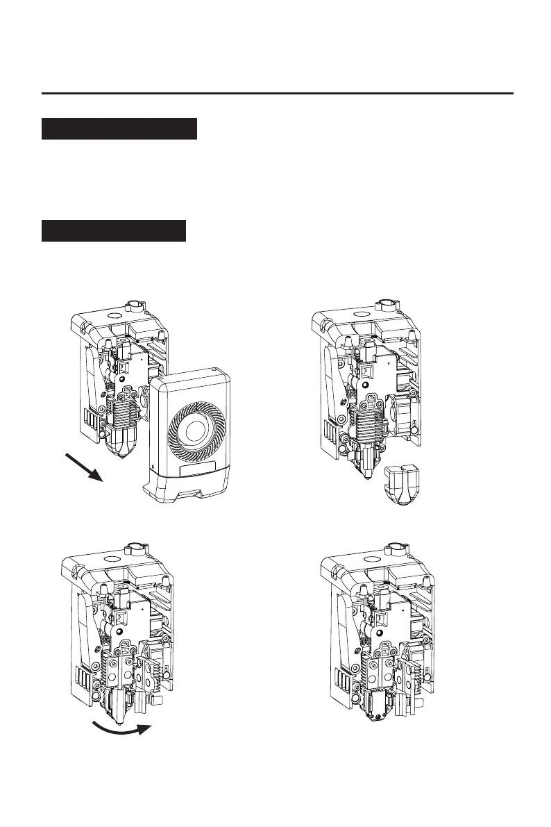 3. 打开散热器固定扣。 4. 最后取下喷嘴。