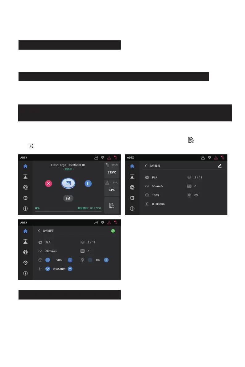 于喷嘴与平台距离过近或者过远而导致的打印不良,可在打印首层时,点击界面的 图标,进行z 轴