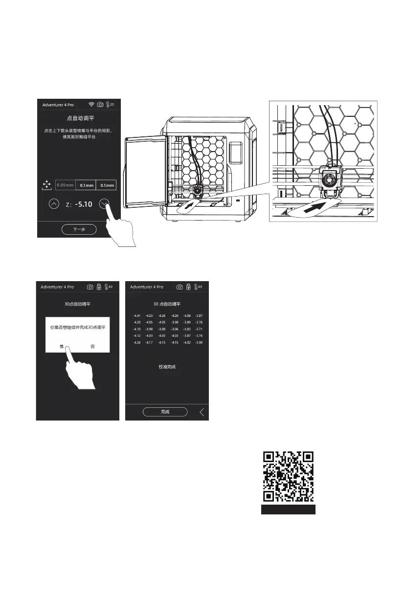 3. 校准完第一个点后按屏幕提示继续完成30点自动调平。