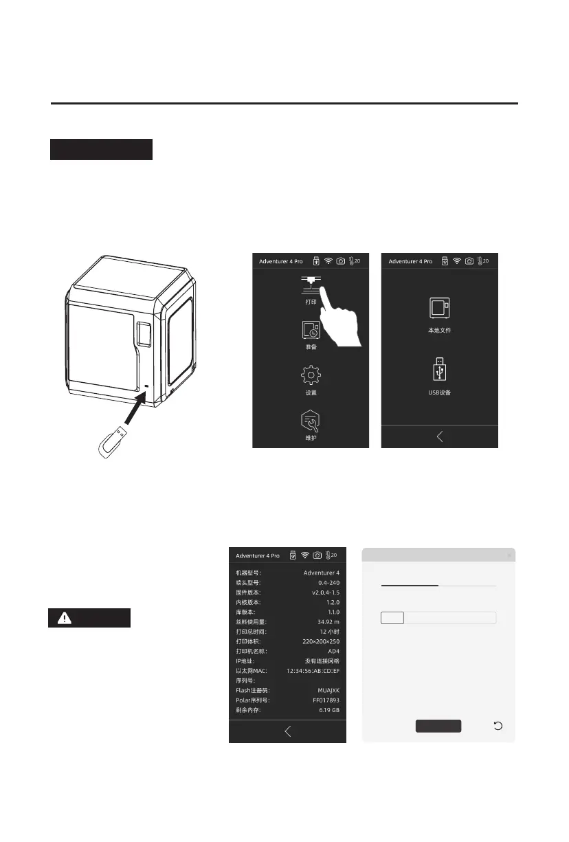 设备可通过U盘打印模型,将切片好的文件保存至U盘插入到设备,选择对应文件点击打印。
