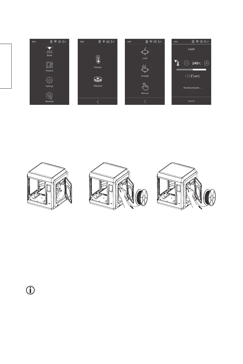 1. Press Prepare 2. Press Filament 3. Press Change 4. The extruder will